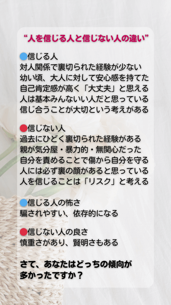 人を信じる人と信じない人の違い